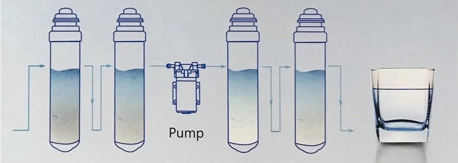 - فلتر RO: يتم فيه إزالة الأملاح والمعادن الثقيلة من الماء، والتخلص من المواد الكيميائية.